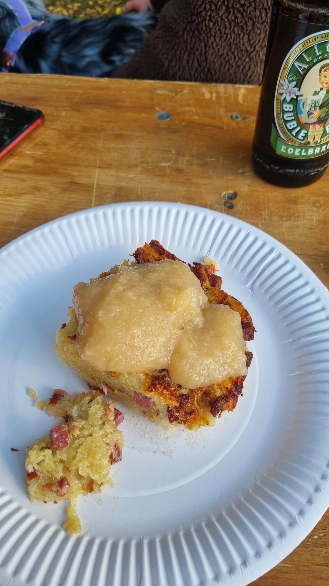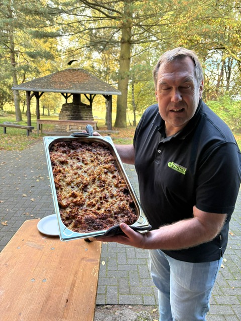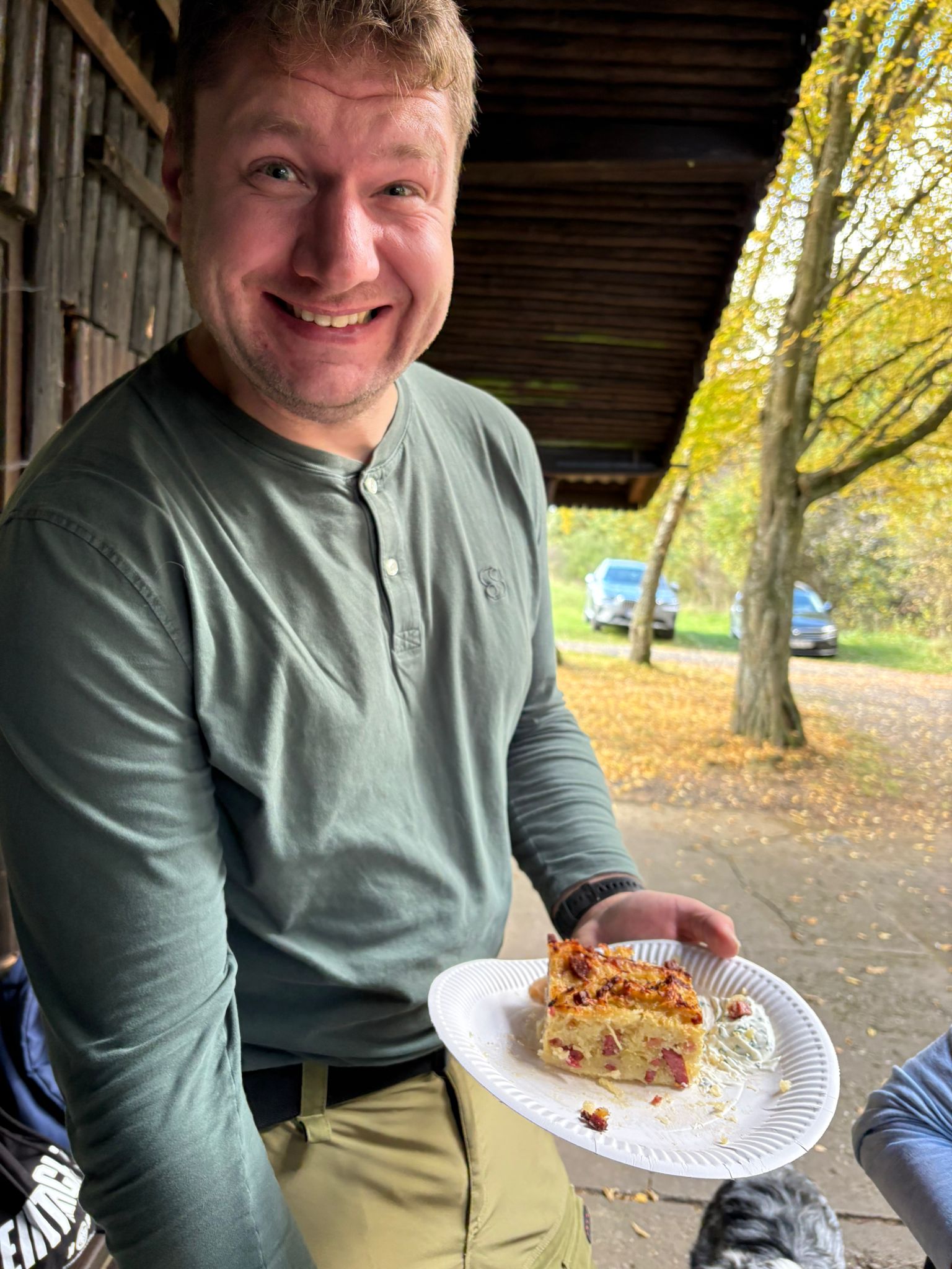 Nach gut drei Stunden erreichten wir unser Ziel, wo bereits das nächste kulinarische Highlight auf uns wartete: Frank Henrich verwöhnte uns mit seinem legendären Dulges, wahlweise mit Kräuterquark oder Apfelbrei – ein echter Gaumenschmaus, der großen Anklang fand.