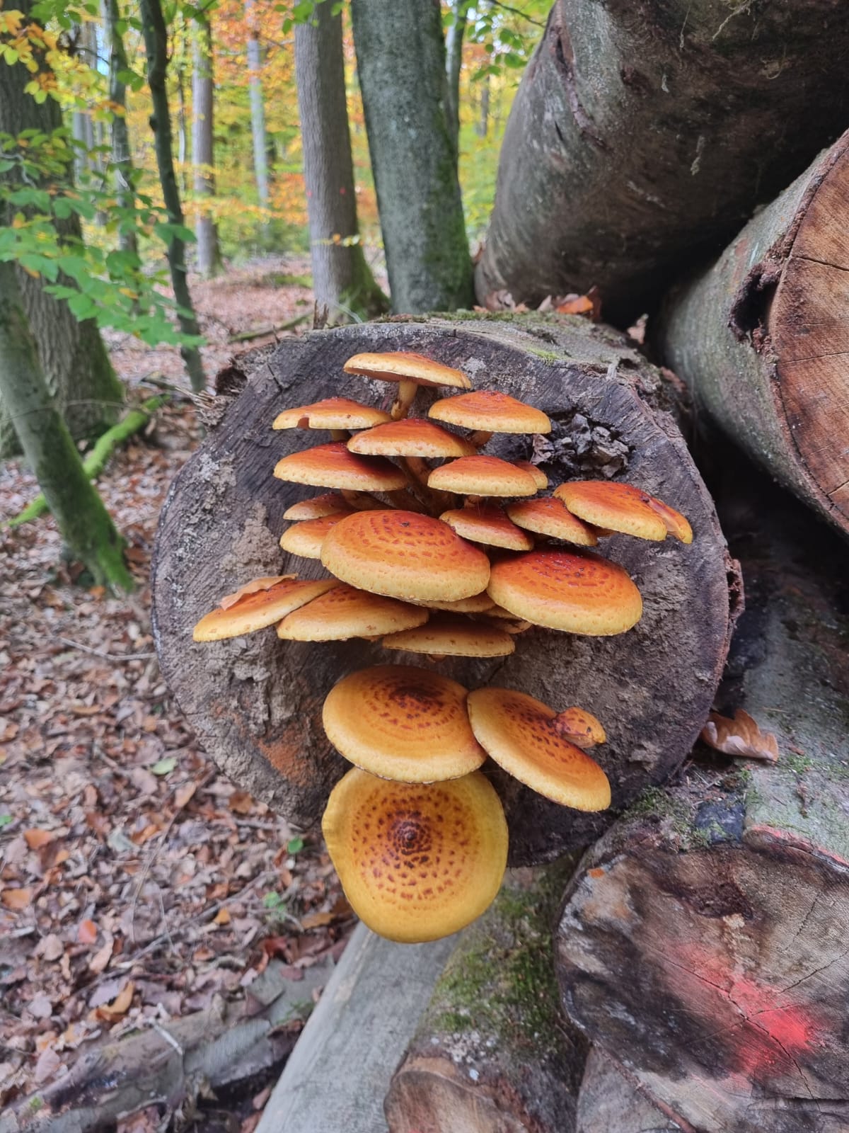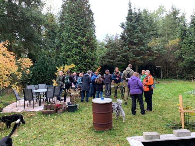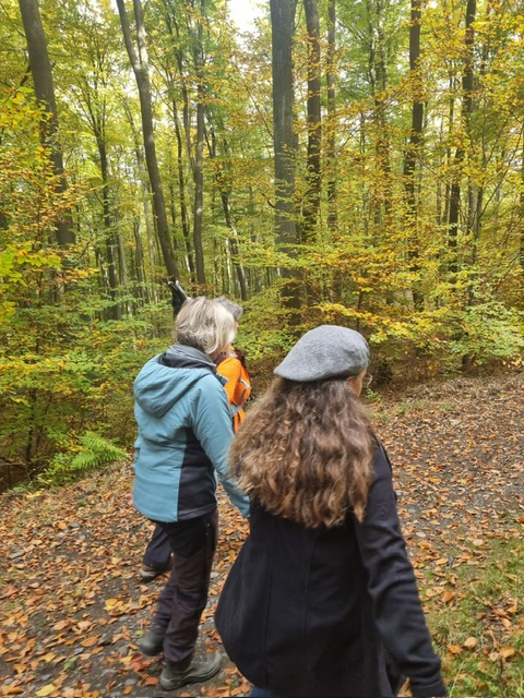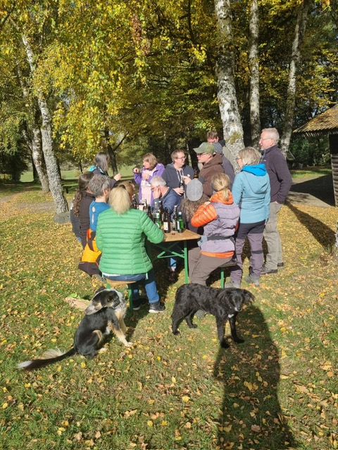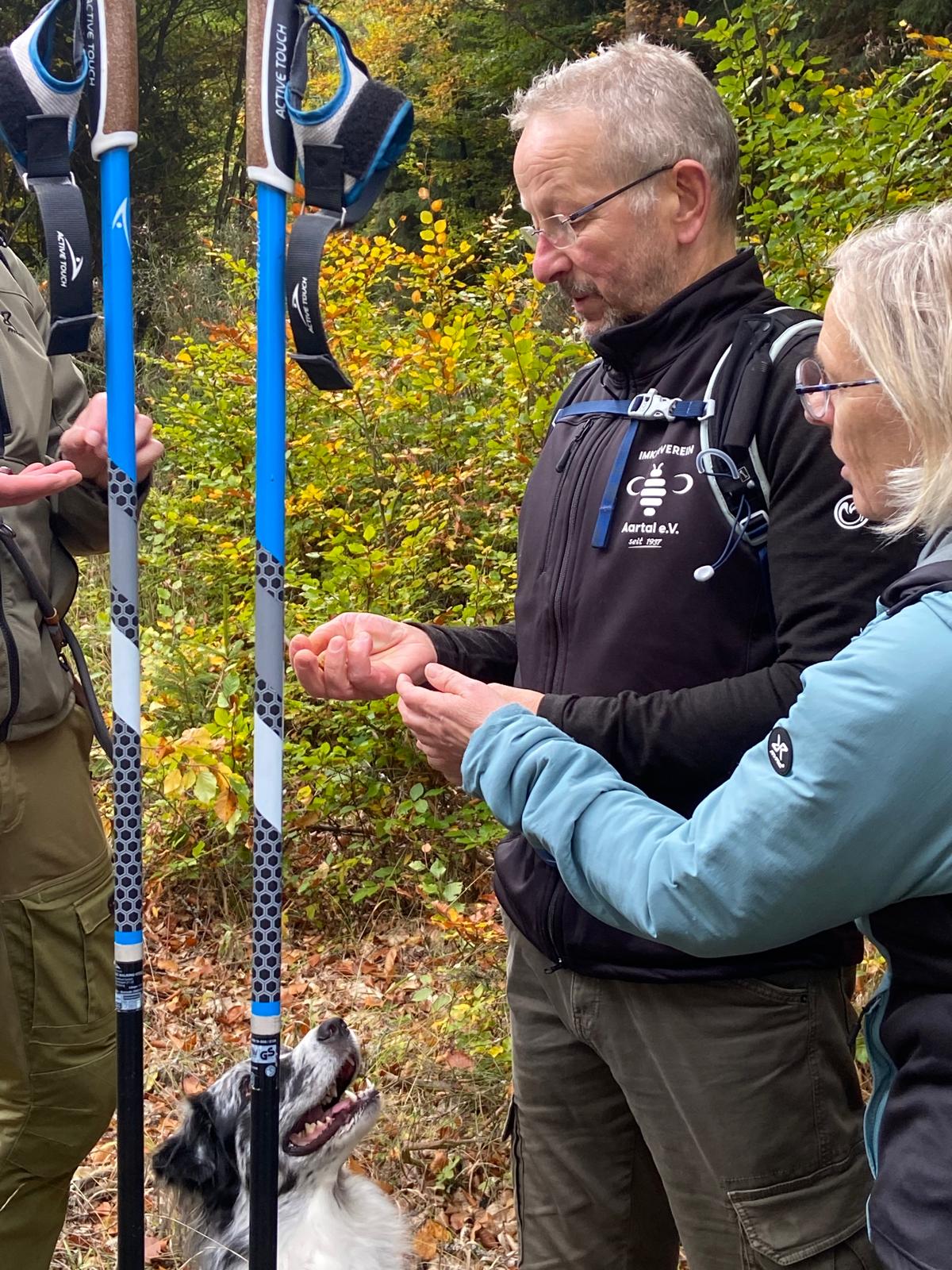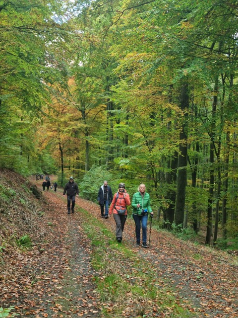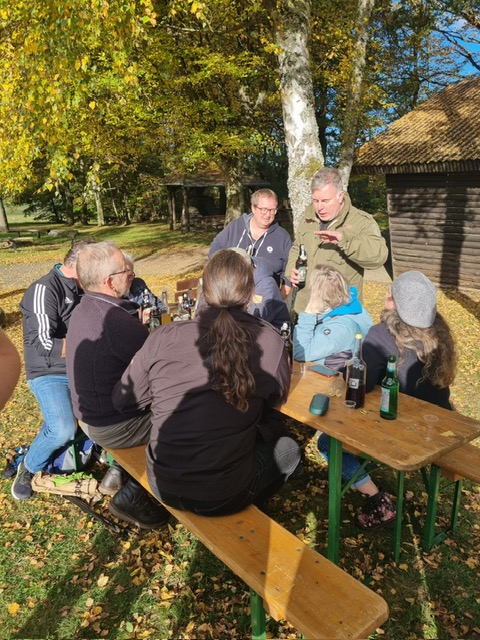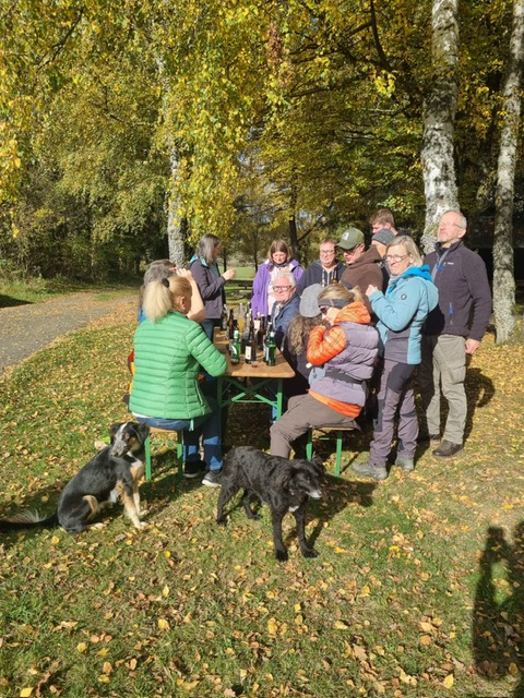 Nach einem kurzen Zwischenstopp am Bienenstand von Marco und Sandra Nickel, wo wir mit leckeren Knabbereien und erfrischenden Getränken bestens versorgt wurden, führte uns der Weg weiter Richtung Bellersdorf. Der Wettergott zeigte sich von seiner besten Seite – pünktlich zum Start verzogen sich die letzten Wolken und wir konnten bei strahlendem Sonnenschein und perfektem Wanderwetter die herbstliche Landschaft genießen.