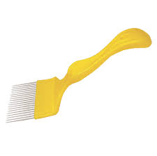 Entdeckelungsgabel, um die Zelldeckel abzuheben und die Waben für die Schleuderung vorzubereiten. Aus Gründen der Hygiene auf Kunststoffgriff achten. Kosten ca. 10-17€