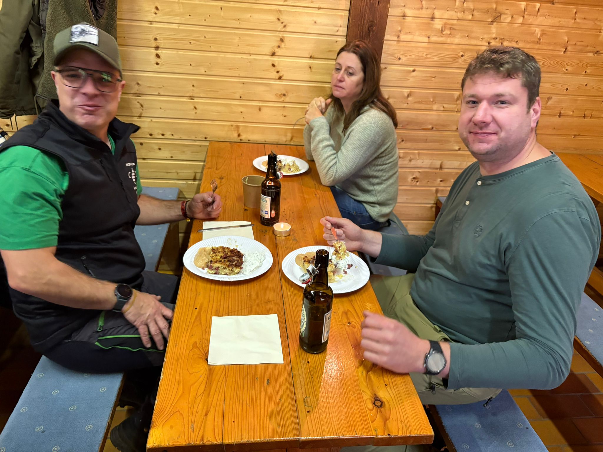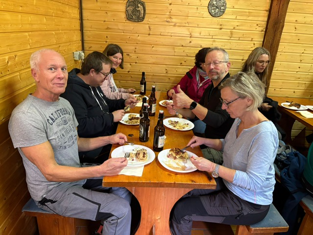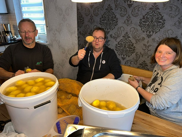 Nach gut drei Stunden erreichten wir unser Ziel, wo bereits das nächste kulinarische Highlight auf uns wartete: Frank Henrich verwöhnte uns mit seinem legendären Dulges, wahlweise mit Kräuterquark oder Apfelbrei – ein echter Gaumenschmaus, der großen Anklang fand.