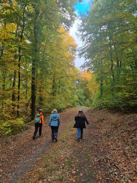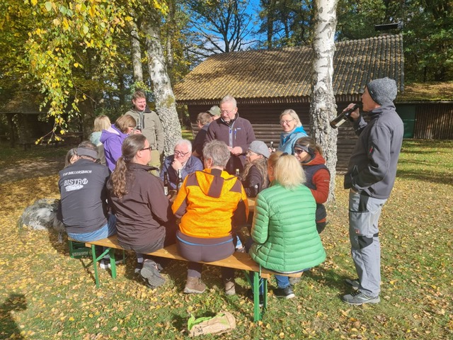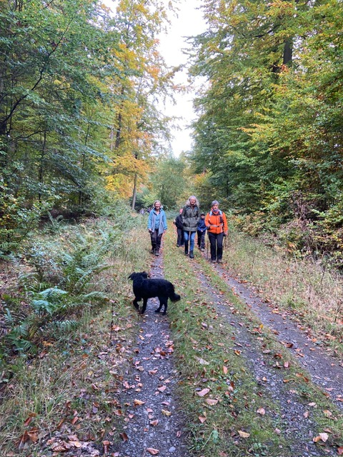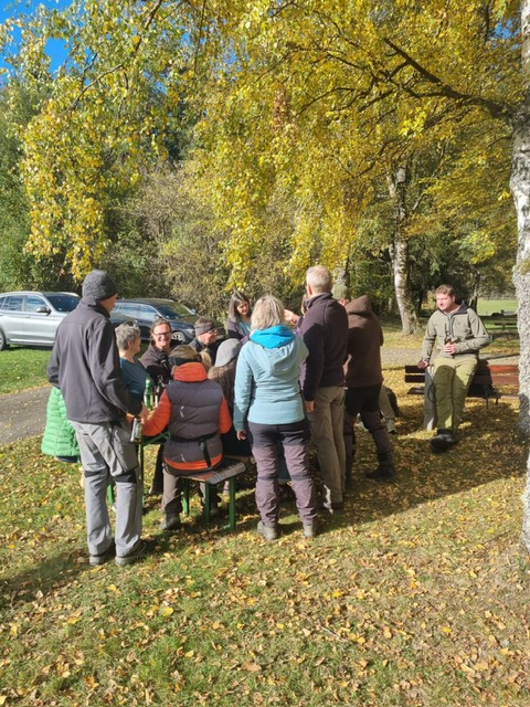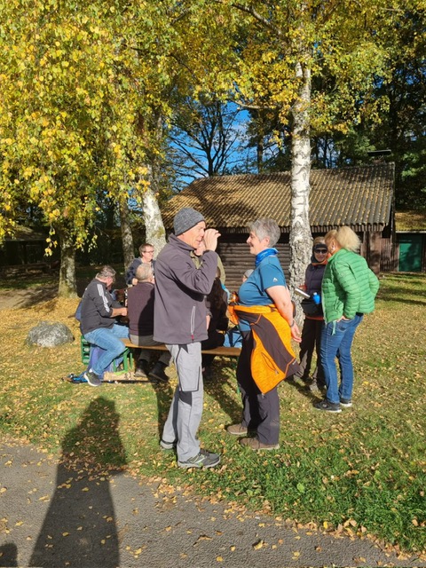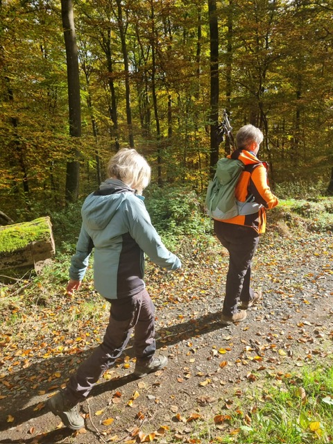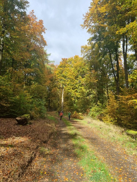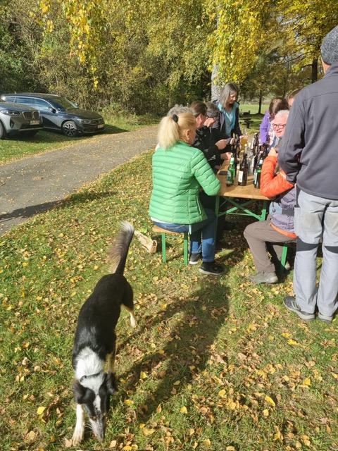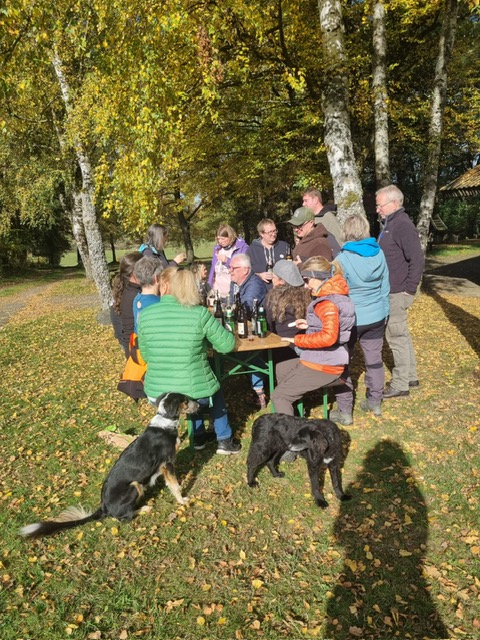 Nach einem kurzen Zwischenstopp am Bienenstand von Marco und Sandra Nickel, wo wir mit leckeren Knabbereien und erfrischenden Getränken bestens versorgt wurden, führte uns der Weg weiter Richtung Bellersdorf. Der Wettergott zeigte sich von seiner besten Seite – pünktlich zum Start verzogen sich die letzten Wolken und wir konnten bei strahlendem Sonnenschein und perfektem Wanderwetter die herbstliche Landschaft genießen.